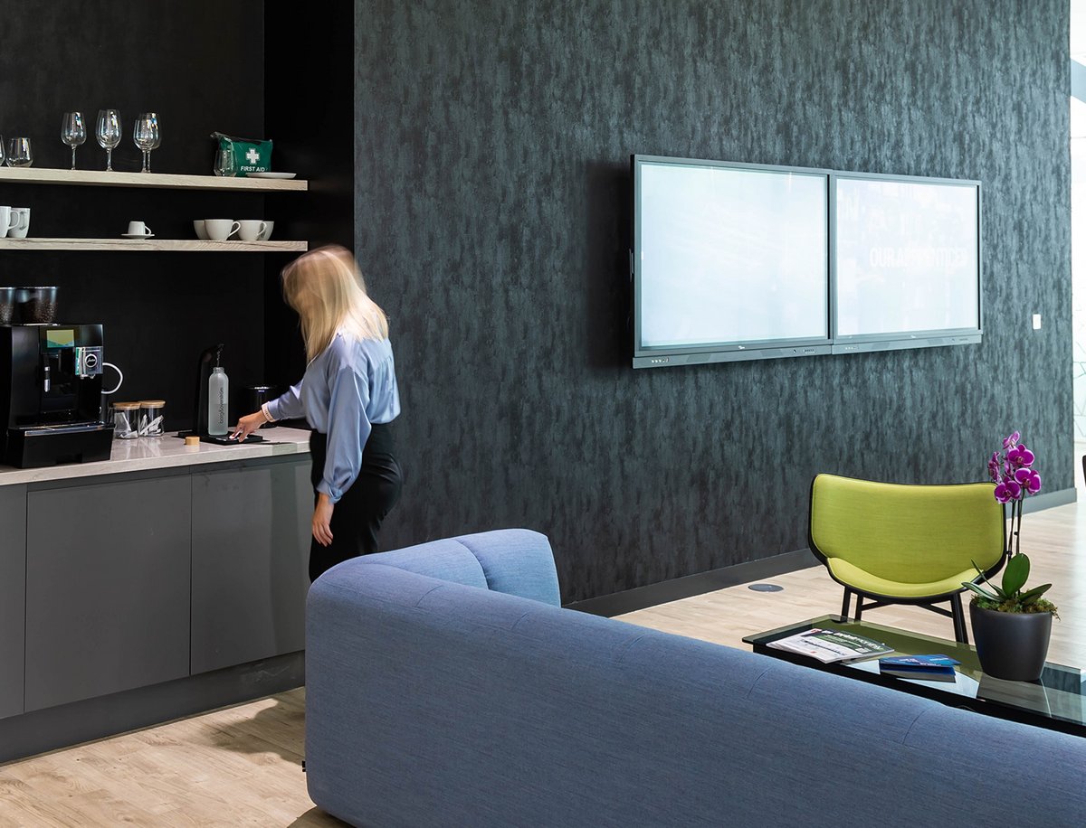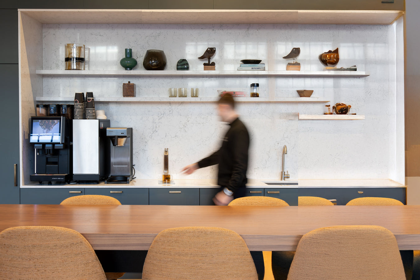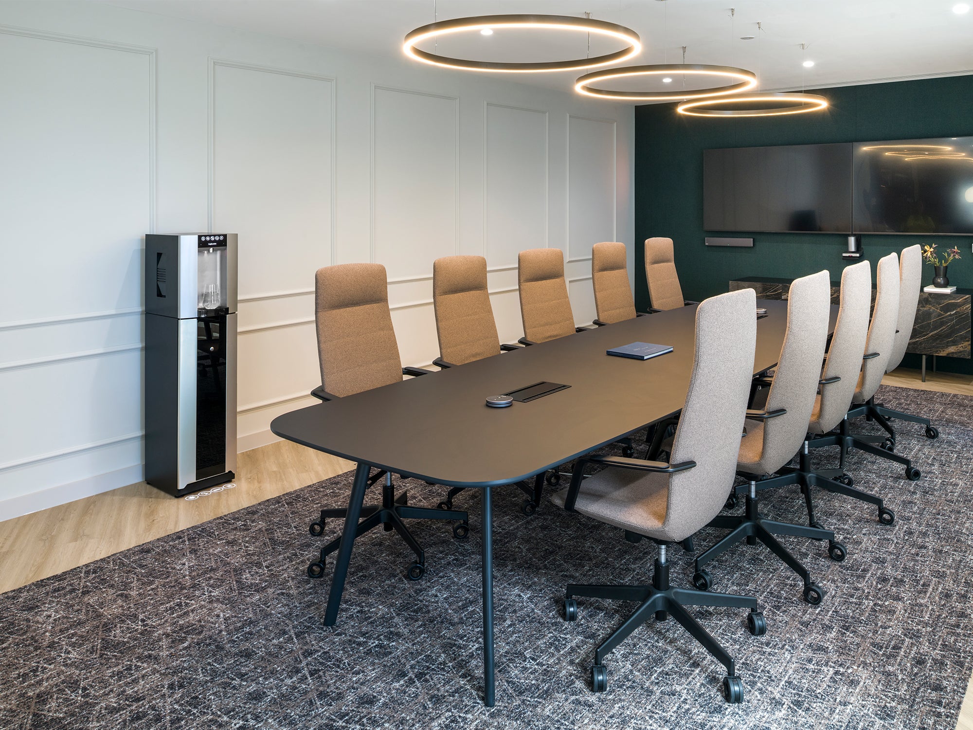 Die Mitarbeiter können gekühltes, sprudelndes und heißes gefiltertes Wasser aus eleganten Multifunktionsarmaturen genießen, die sich harmonisch in die Gemeinschaftsräume einfügen. Diese Ausstattung macht Wasserkocher und Einwegflaschen überflüssig und fördert ein durchdachtes und nachhaltiges Arbeitsumfeld.