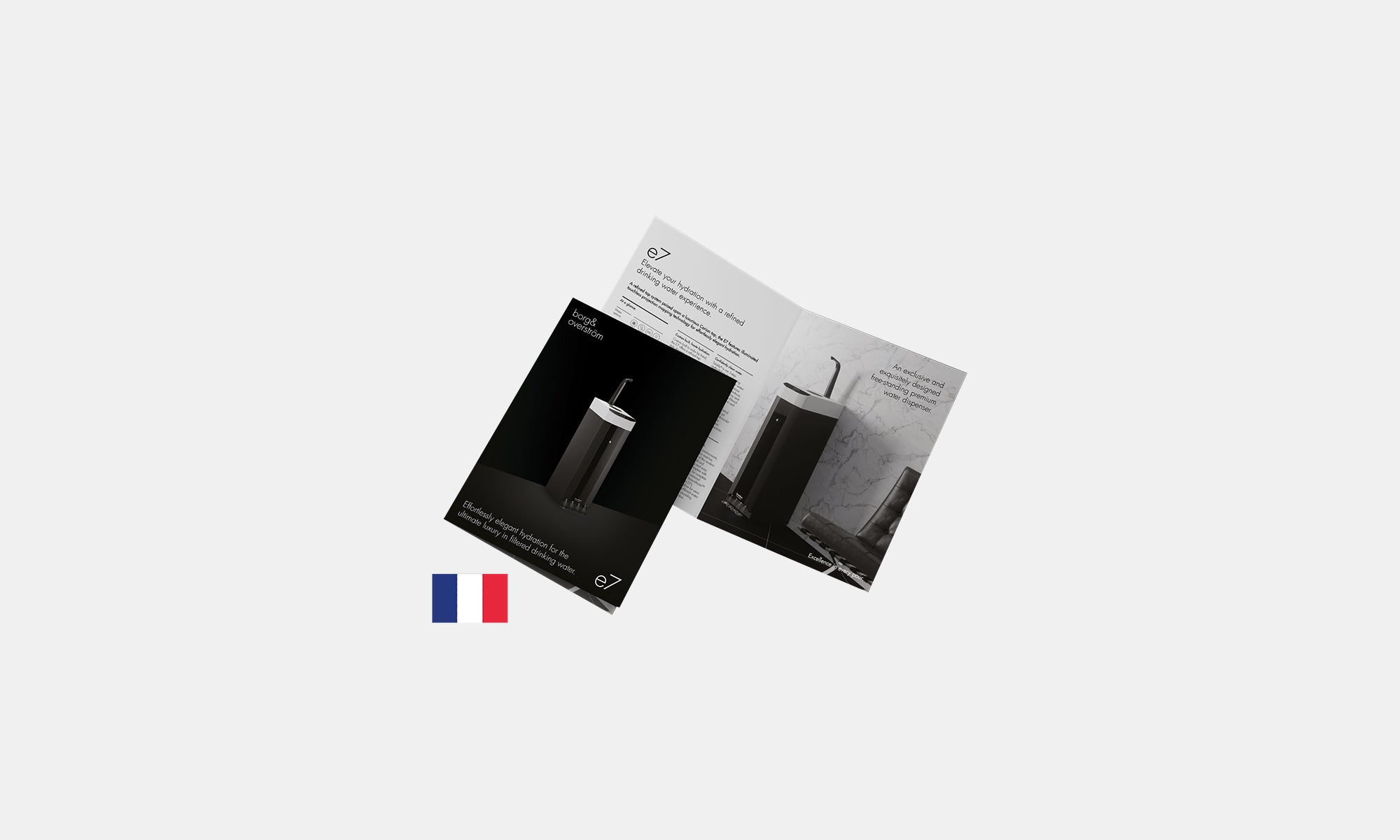 Französische Produktbroschüren – vollständige Produktinformationen und Spezifikationen in einer 240 x 360 mm großen, auf 180 x 240 mm gefalteten Broschüre.