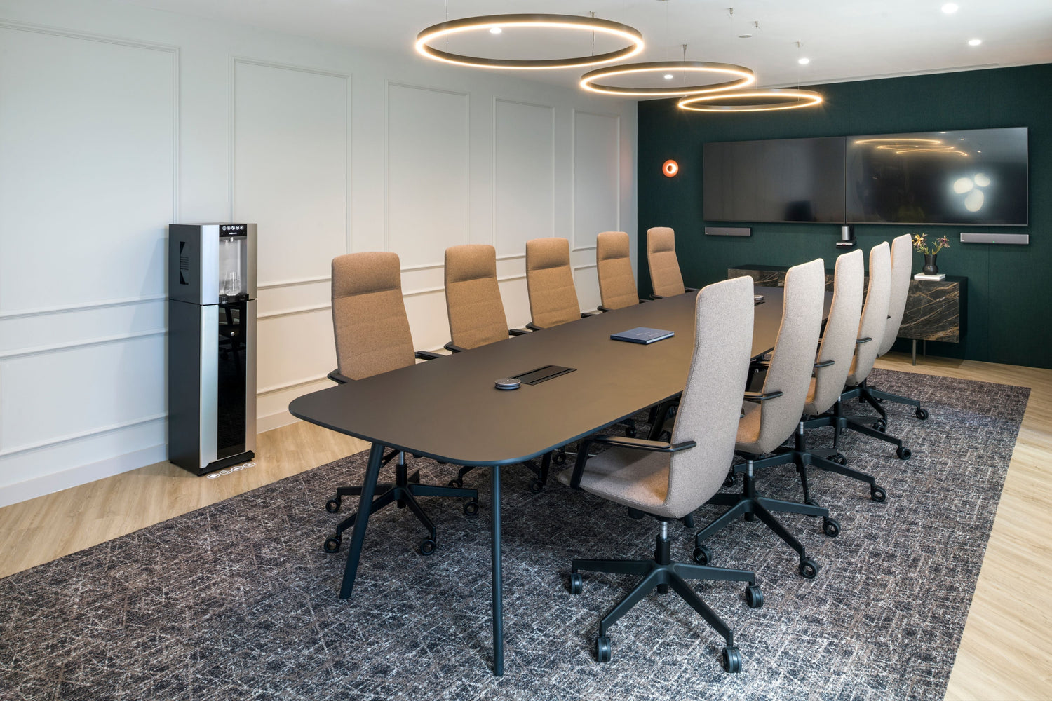 Instead of participants having to leave the room to find water, having a water dispenser in the board room saves time.