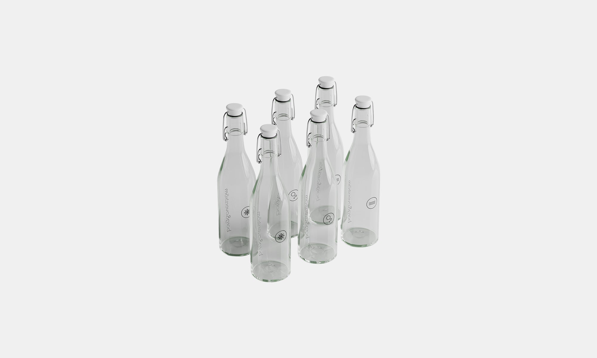 6 x Assorted Glass Bottles - 2 x Chilled icon - 2 x Ambient icon - 2 x Sparkling icon Capacity: 750ml Closure: Swing-top Branded: Borg & Overström