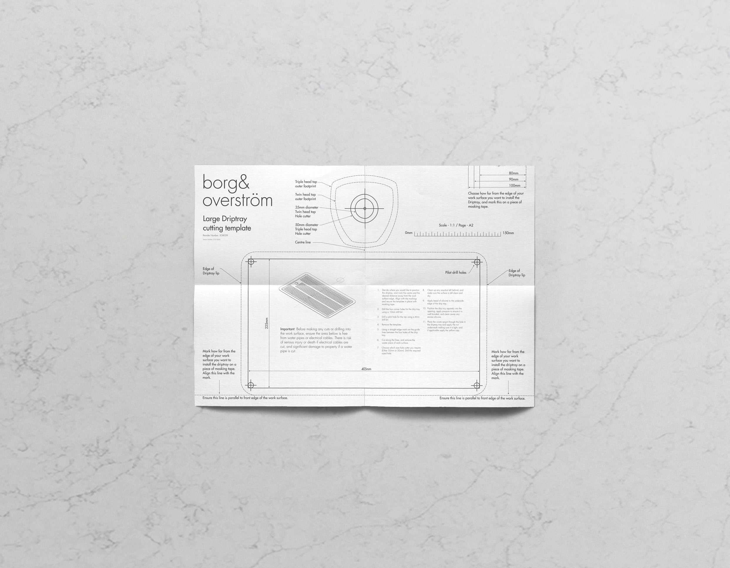 Each Large Flush Fitted Drip tray is dispatched with a cutting template for ease of installation. If you wish to cut your work surface before delivery of your tap system you can order a cutting template in advance.