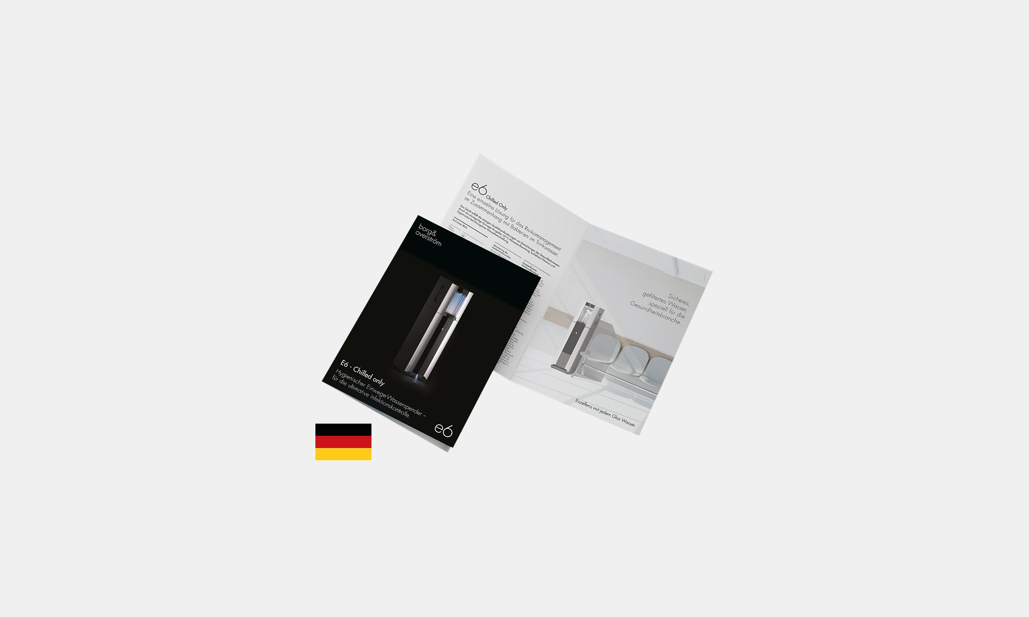 Brochures de produits allemandes - informations complètes sur le produit et spécifications regroupées dans une brochure de 240 x 360 mm pliée en 180 x 240 mm.