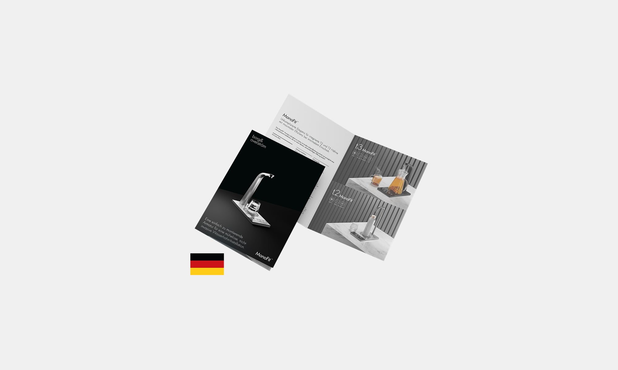 German Product Brochures - full product information and specification packed into a 240x360mm folded to 180x240mm brochure.
