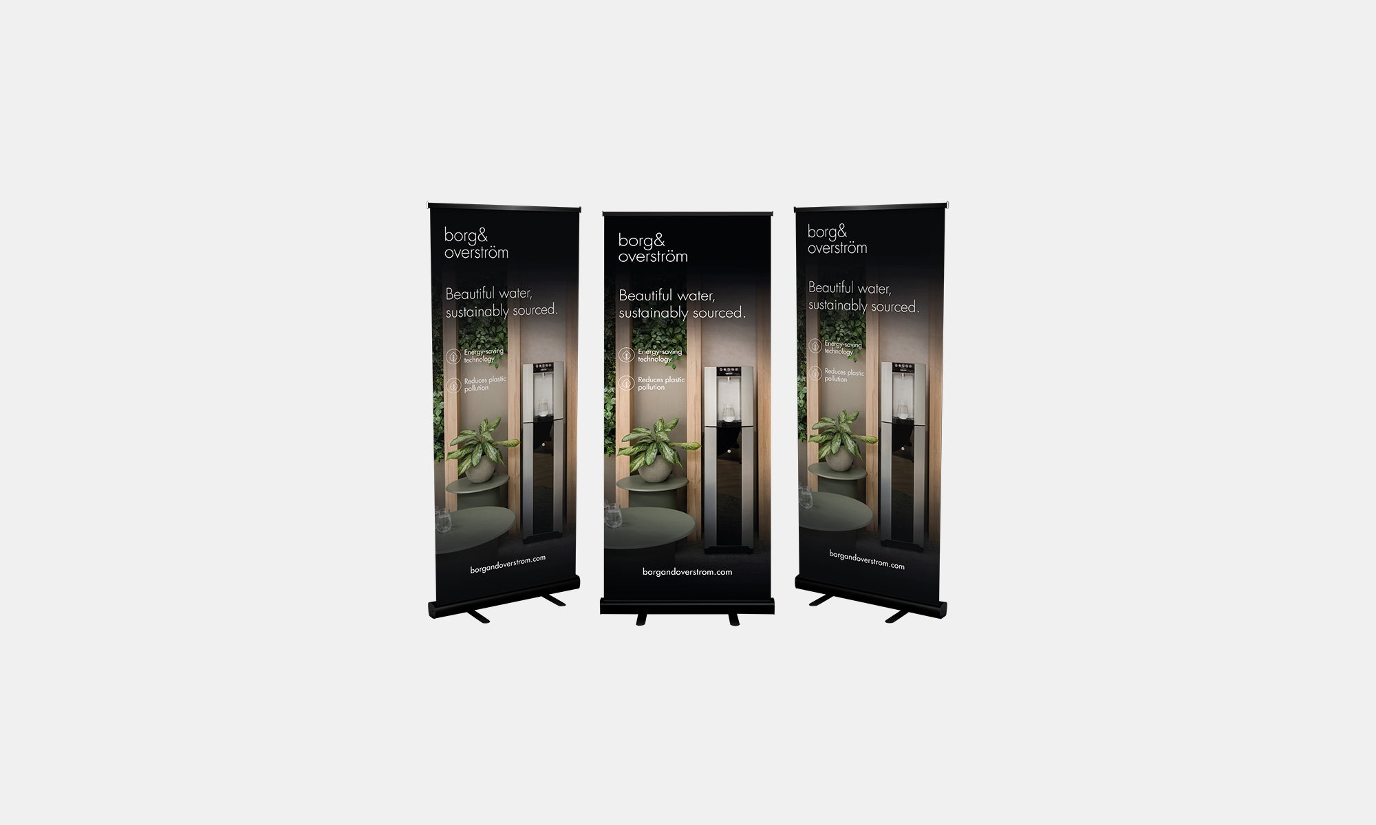 Promote the E6 Water Dispenser with this point of sale display stand. These lightweight, portable roller banners are an ideal attraction for your showroom, a road-show or a trade exhibition.